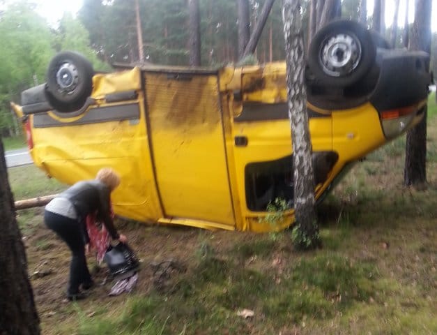 W sobotę na „trasie śmierci” koło baru Ania bus wypadł z drogi i dachował. Samochodem jechały dwie osoby.