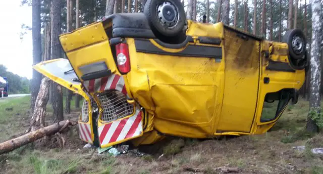 Kierowca busa stracił panowanie nad kierownicą prawdopodobnie z powodu nadmiernej szybkości. Renault master wpadł w poślizg i koziołkował na trasie Zielona Góra – Nowogród Bobrzański. Samochód zatrzymał się między drzewami w lesie.