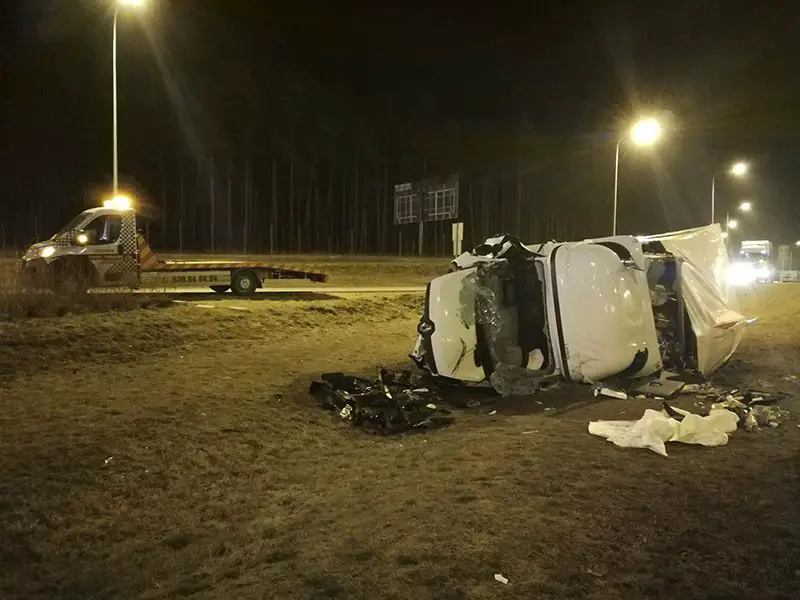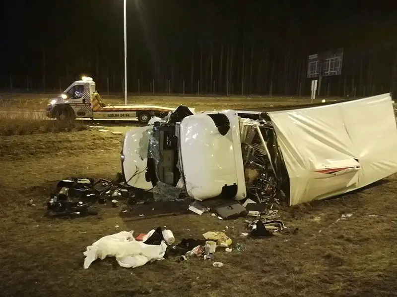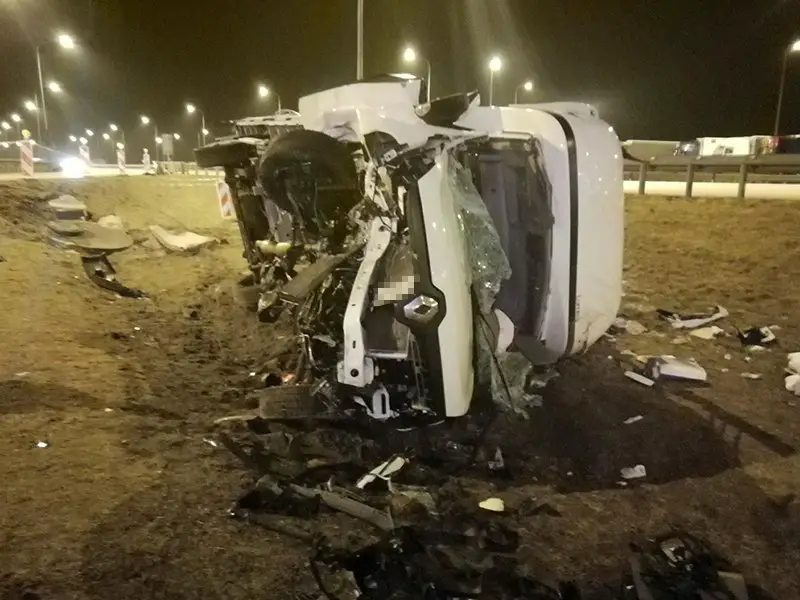 Do wypadku doszło w czwartek, 15 marca. Bus rozbił barierki, uderzył w betonowy kolektor i wypadł z drogi. Pojazd roztrzaskał się o pobocze upadając na bok. Do zdarzenia doszło na odcinku koło MOP-u Gliniec. To piąty kilometr trasy, pas zjazdowy.