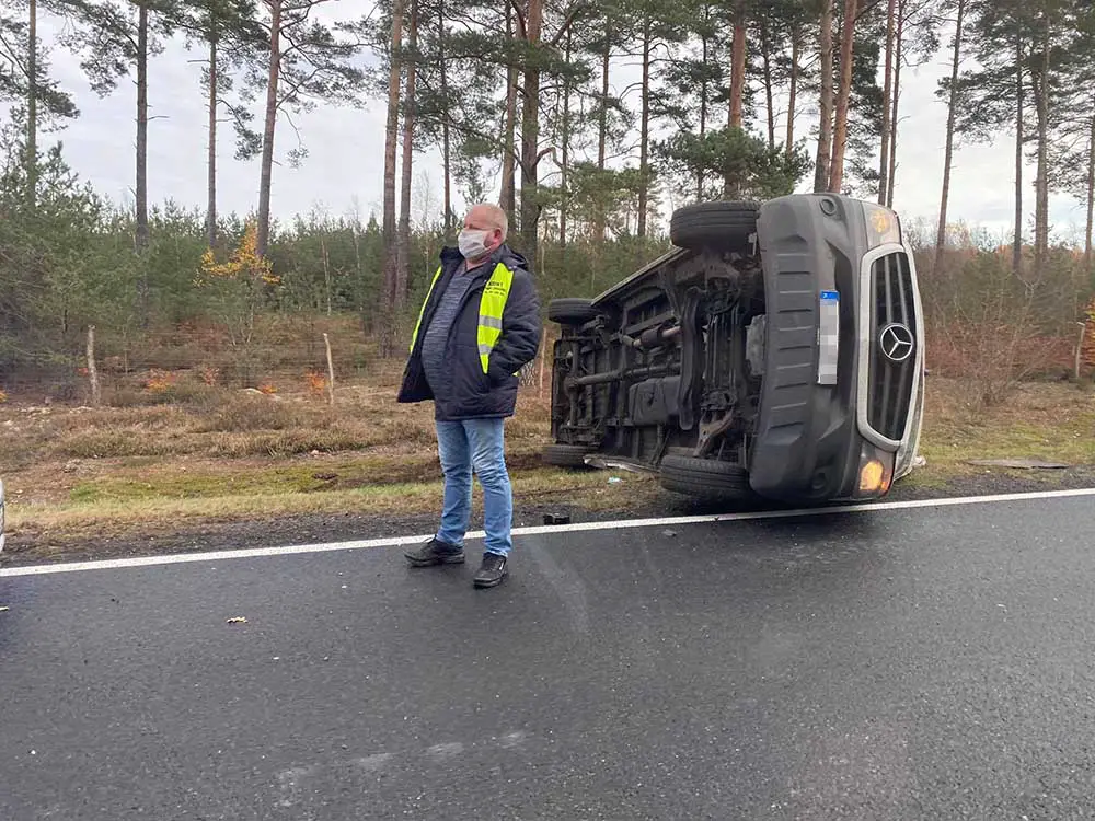 Kierujący mercedesem busem około godz. 10.00 wypadł z drogi i dachował na poboczu. Na miejsce została wezwana zielonogórska policja. Kiedy radiowóz dotarł na miejsce zdarzenia kierowcy już nie było. Uciekł porzucając rozbitego busa, który blokował jeden pas ruchu.