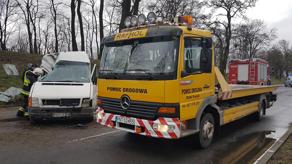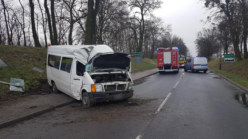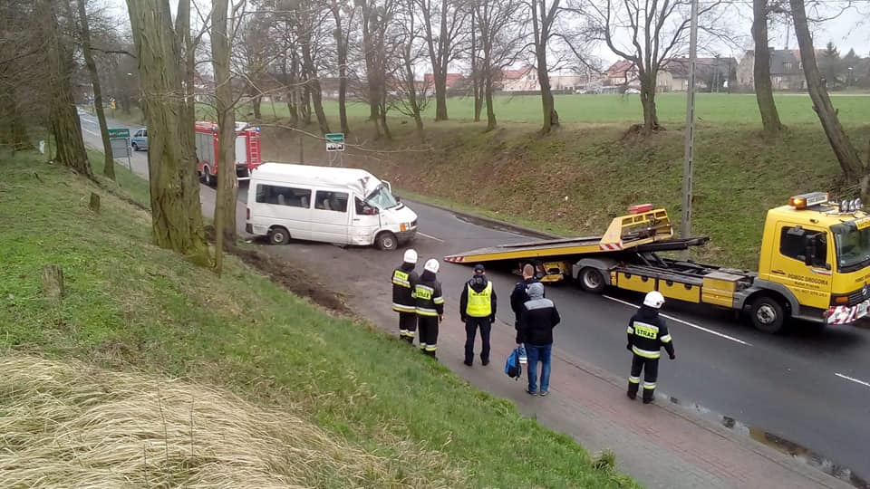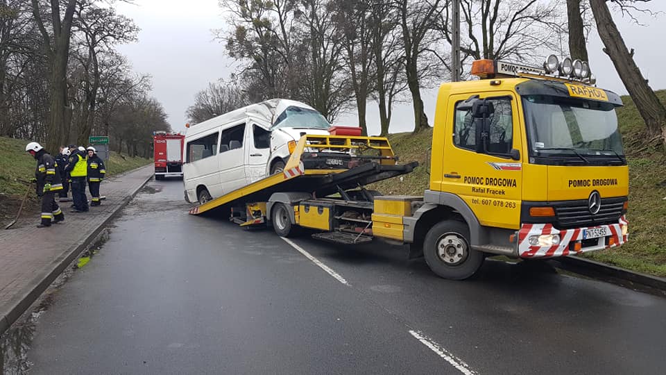 Do wypadku doszło po godz. 8.00. Z niewyjaśnionych jeszcze przyczyn bus prowadzony przez 60-latkę wypadł z drogi na ul. Kosieczyńskiej. Samochód bokiem uderzył w drzewo.