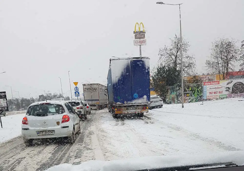 Cały czas poważne kłopoty są również na tzw. górce świdnickiej. Tam też drogę blokują ciężarówki.