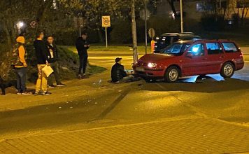 Kompletnie pijany kierowca uderzył w lampę na rondzie w Zielonej Górze. Zatrzymali go ludzie...