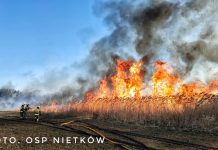 Ogromny pożar traw i trzcin w Nietkowie. Płomienie miały kilka metrów (ZDJĘCIA)