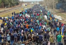 Mieszkańcy Enerhodara w obwodzie zaporoskim wyszli na ulicę, blokując przejazd dla rosyjskiej kolumny wojskowej.