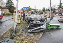 Wypadek w Zielonej Górze. Zderzenie dwóch peugeotów. Jeden dachował (ZDJĘCIA)