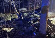 Uciekał policji, bo ma dwa zakazy prowadzenia. Rozbił się o drzewo