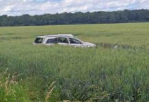 Kierujący samochodem osobowym wypadł z drogi koło Czerwieńska dachują na polu. Prędkość musiała być duża, bo samochód zatrzymał się daleko w polu.