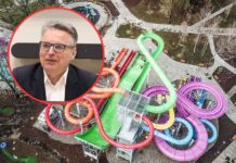 Janusz Kubicki, prezydent Zielone Góry na konferencji prasowej zdradził pierwszy szczegóły kąpieliska H2Ochla. To siedem zjeżdżali, każda ze swoim wyhamowującym basenem.