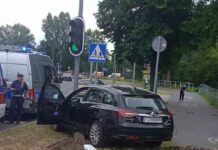 Do niebezpiecznego zdarzenia doszło w środę, 19 czerwca na ul. Zjednoczenia. Kierujący oplem wypadł z drogi i uderzył w lampę na chodniku przy przejściu...