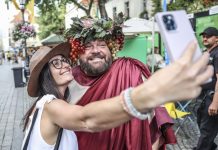 Kiedy Bachus pojawia się na zielonogórskim deptaku wszyscy sięgają po telefony lub aparaty fotograficzne. Oczywiście Bachusa to cieszy.