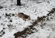 Martwy wilk znaleziony przy drodze koło Nowogrodu Bobrzańskiego