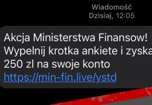 Uwaga na fałszywe SMS-y, które wykorzystują wizerunek ministerstwa finansów. Link zawarty w wiadomości prowadzi do strony wyłudzającej dane