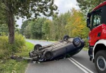Świebodzin. Dachowanie Audi, kierujący kompletnie pijany