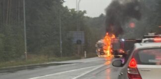 Pożar ciężarówki wybuchł w środę, 8 października, przy rondzie Solidarności koło Przylepu, dzielnicy Zielonej Góry.