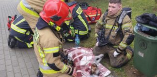 Zielonogórscy strażacy uratowali dwa psy z pożaru mieszkania. Podali im tlen...