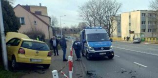Wypadek w Zielonej Górze. Samochód uderzył w ogrodzenie, jest zadymienie