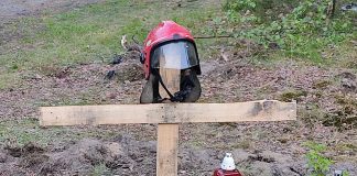 Hełm, krzyż i znicze na „trasie śmierci, w miejscu tragicznej śmierci...