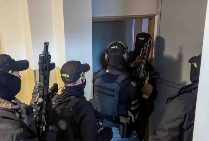 Funkcjonariusze Centralnego Biura Śledczego Policji przeprowadzili działania, w wyniku których zatrzymano pięciu mężczyzn w wieku od 33 do 70 lat. Zatrzymani to obywatele Polski, Rosji, Mołdawii i Ukrainy. Z ustaleń śledczych wynika, że zatrzymani mężczyźni mieli podjąć próbę wymuszenia rozbójniczego na przedsiębiorcy prowadzącym działalność w sektorze deweloperskim. Działając wspólnie i w porozumieniu, mieli grozić pokrzywdzonemu i podejmować działania mające na celu zmuszenie go do przepisania im działki budowlanej wartej około 12 milionów złotych.