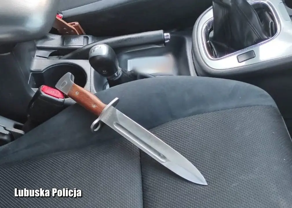 Policjant zobaczył, że kierowca sięga po bagnet w kaburze przymocowanej przy siedzisku bagnet. Po chwili 44-latek bagnetem zaatakował funkcjonariuszy, jednocześnie grożąc im śmiercią. Policjanci wytrącili mu bagnet z ręki i szybko obezwładnili go.