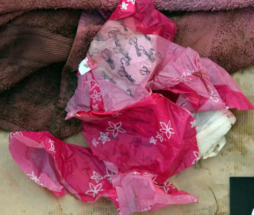 W torbie znaleziono damską nocną koszulkę bawełnianą w rozmiarze S firmy Dehai. – To sugeruje, że osoba, która urodziła dziecko, jest drobnej postury – mówi prokurator Antonowicz. W torbie z maluszkiem była również zabrudzona podkoszulka na ramiączkach z napisem Follow Filippi oraz emblematem słonia, damskie majtki, podpaski higieniczne.