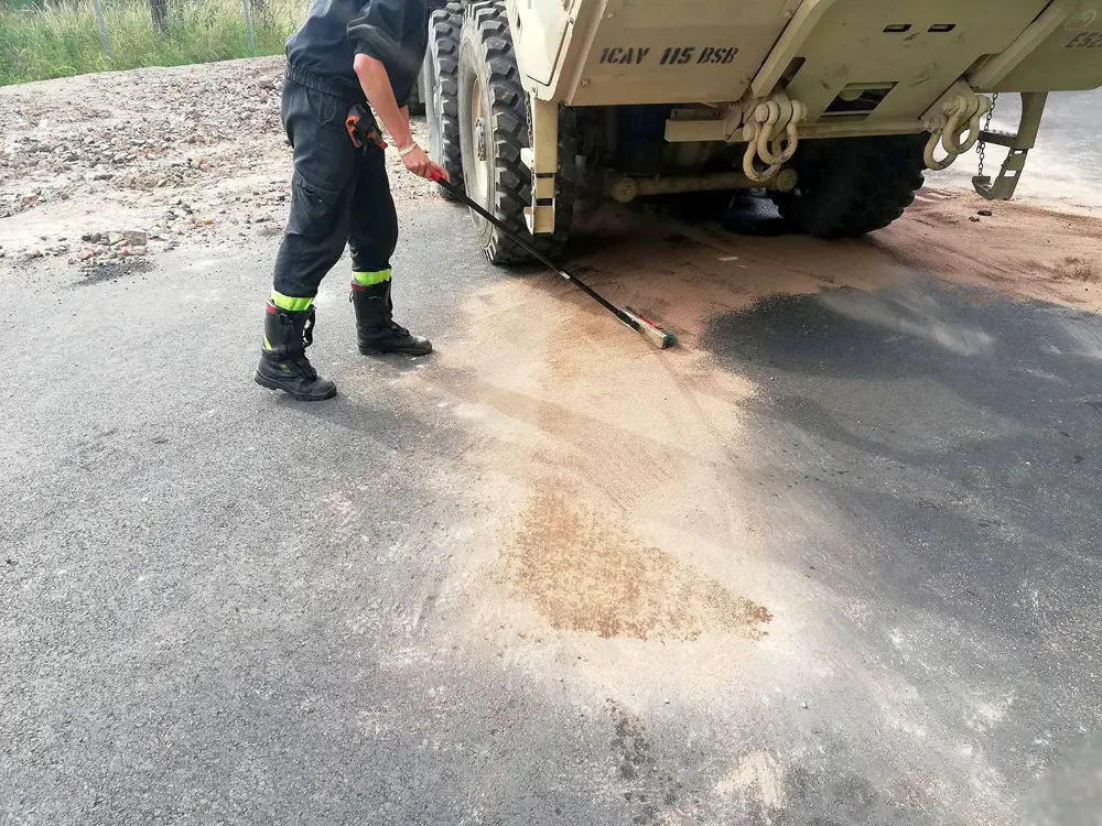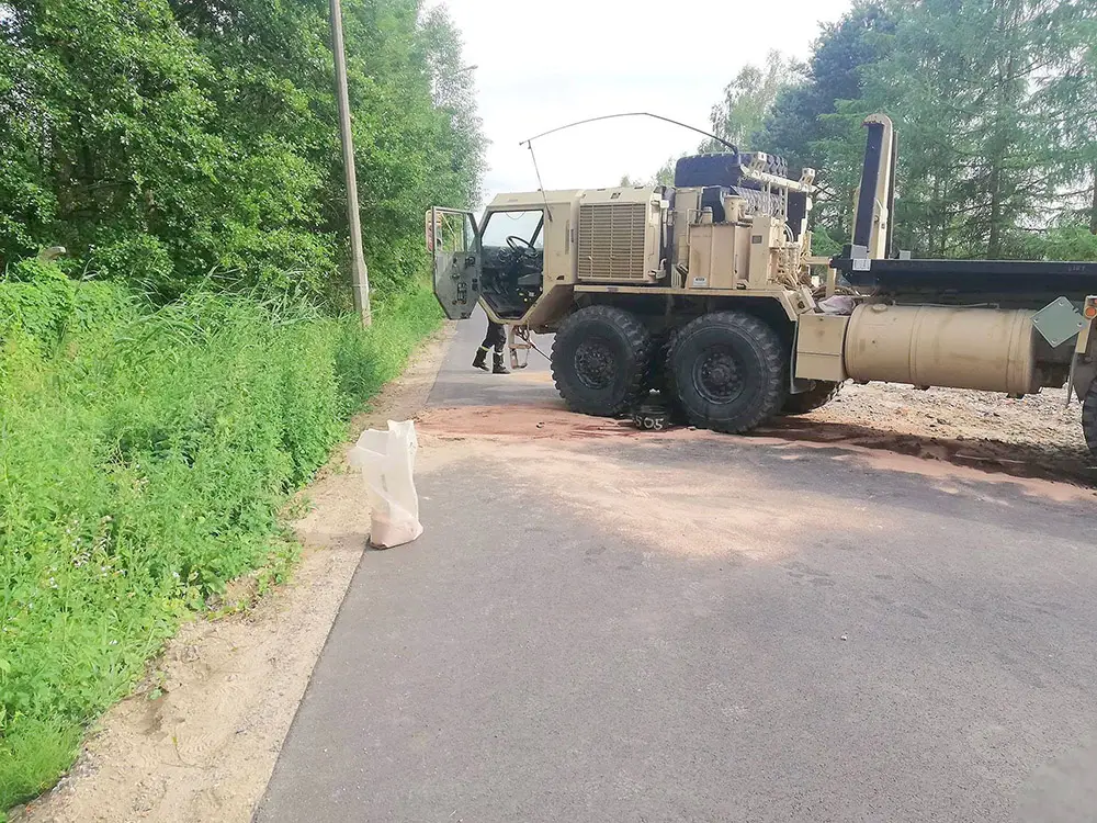 Do zdarzenia doszło w piątek, 29 czerwca. Amerykańska ciężarówka zepsuła się podczas jazdy ul. 61 Brygady. Z powodu awarii na jezdnię wyciekło około 100 litrów oleju hydraulicznego. Olej rozlał się po jezdni w czasie jazdy. To stwarzało ogromne zagrożenie dla innych kierujących.