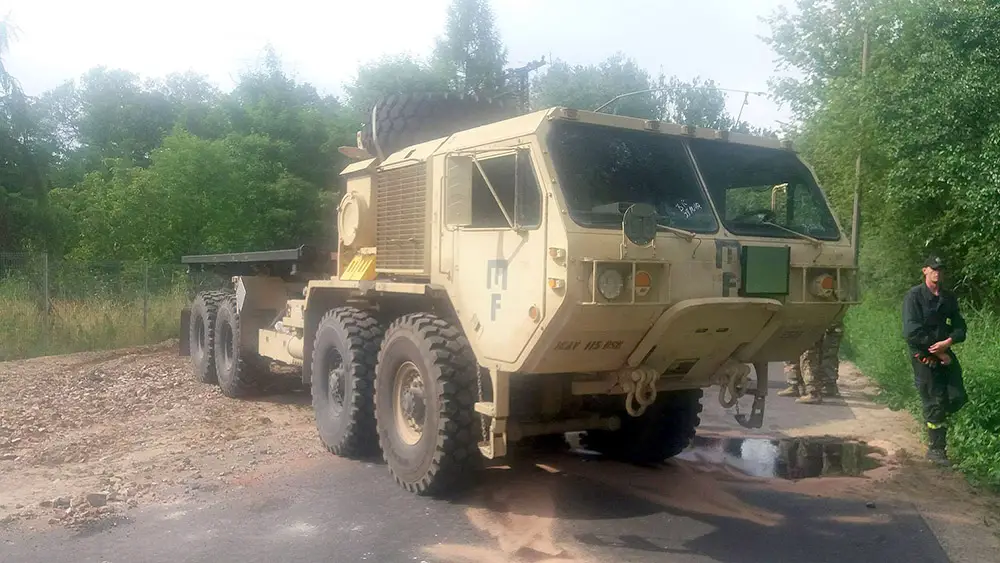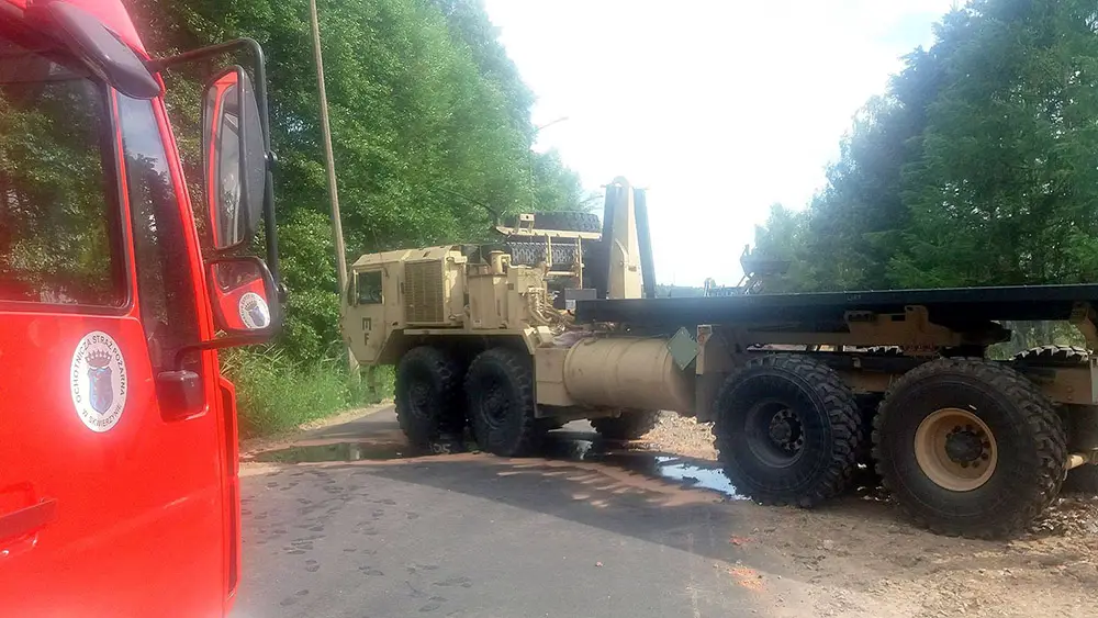 Do zdarzenia doszło na ul. 61 Brygady w Skwierzynie. Awaria ciężarówki żołnierzy amerykańskich postawiła na nogi strażaków OPS Skwierzyna.