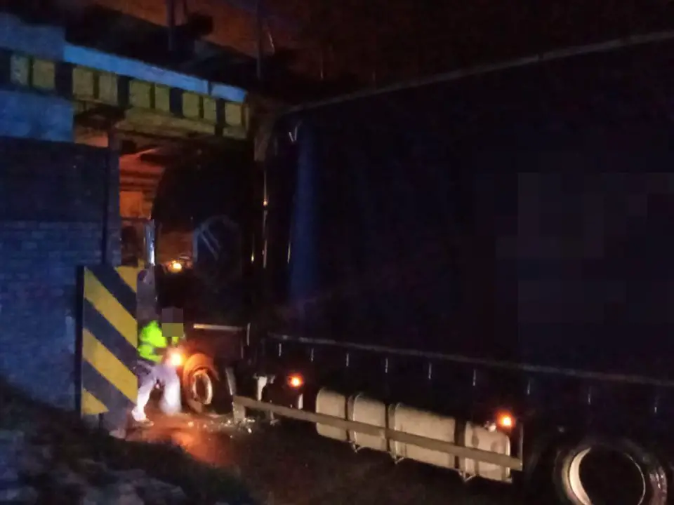 Do zdarzenia doszło w piątek, 8 stycznia, na drodze w Santoku pod Gorzowem. Kierujący ciężarówką nie zauważył znaków drogowych i utknął pod nim.