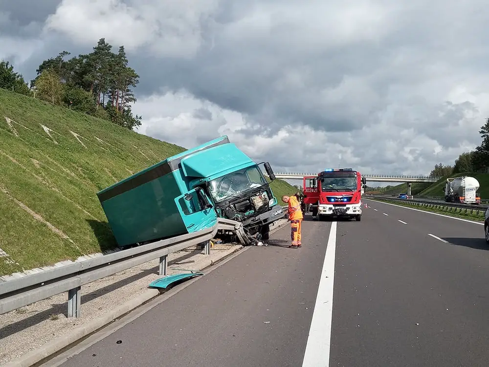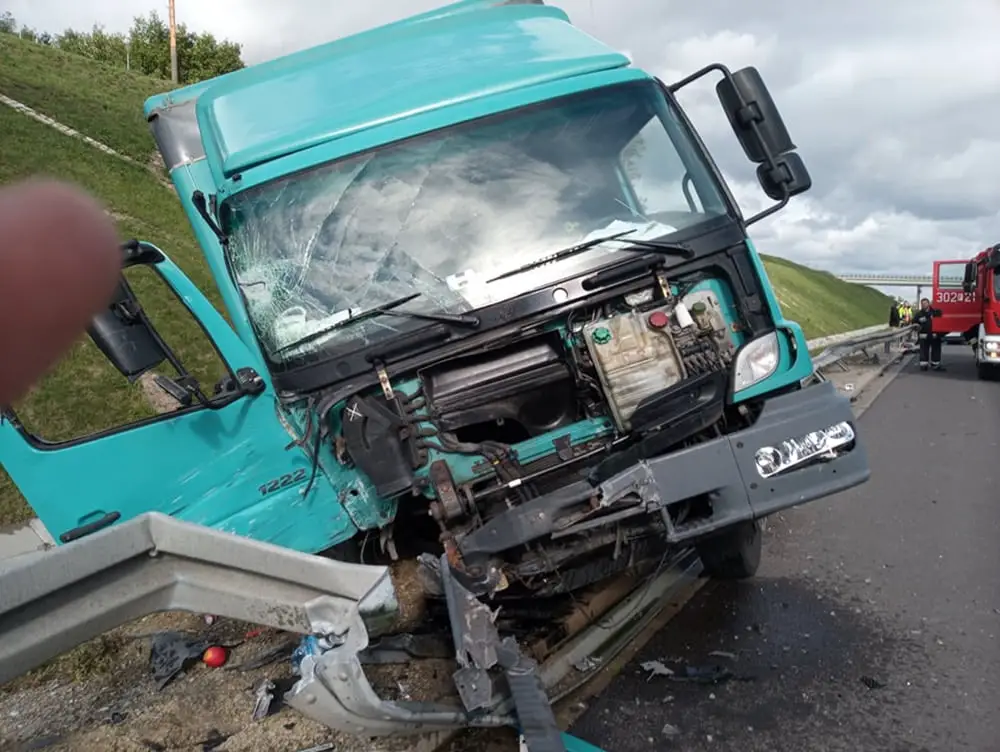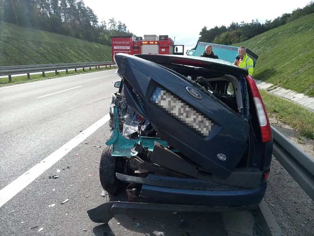 Kierujący ciężarówką jechał S3 w kierunku Zielonej Góry. Nagle uderzył w stojącego na poboczu trasy forda. Jego kierowca zjechał na pas awaryjny, bo wcześniej pękła mu opona. Uderzony przez ciężarówkę ford wpadł na bariery. Ciężarówka wypadła z drogi. Na miejsce zdarzenia przyjechały służby ratunkowe.