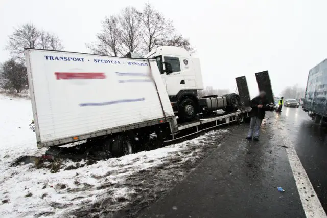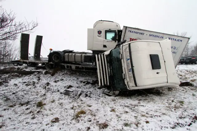Do kraksy doszło we wtorek przed godz. 9.00 na krajowej „trójce” pod Zieloną Górą. Kierowca ciężarówki wpadł poślizg i wyleciał z drogi.