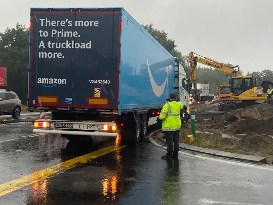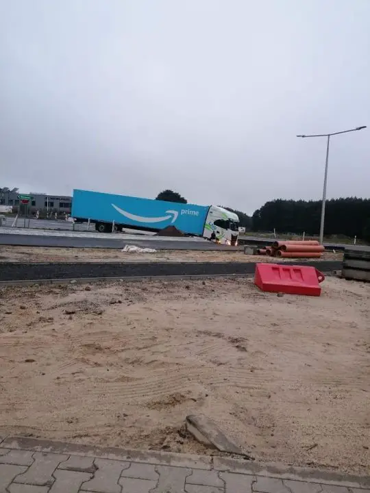Kierujący ciężarówką zagapił się, nie zauważył znaków drogowych lub po prostu jechał za szybko. W efekcie wjechał na budowane rondo prosto w wykopy.