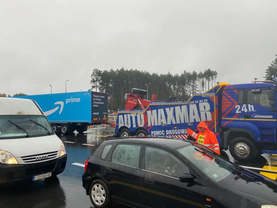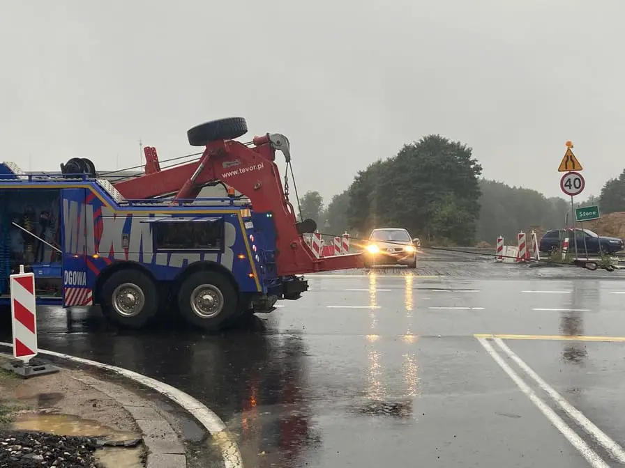 Na szczęście ciężarówka nie przewróciła się. Samochód utknął jednak w pisaku i wykopach. – Na miejsce ściągnęliśmy holownik, który wyciągnął ciężarówkę na drogę – mówi Marek Dziubałka z pomocy drogowej Maxmar.