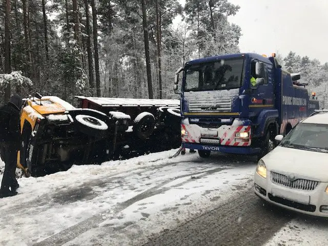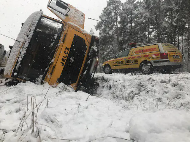 Godz. 15.00 Ciężarówka została już wyciągnięta z pobocza.