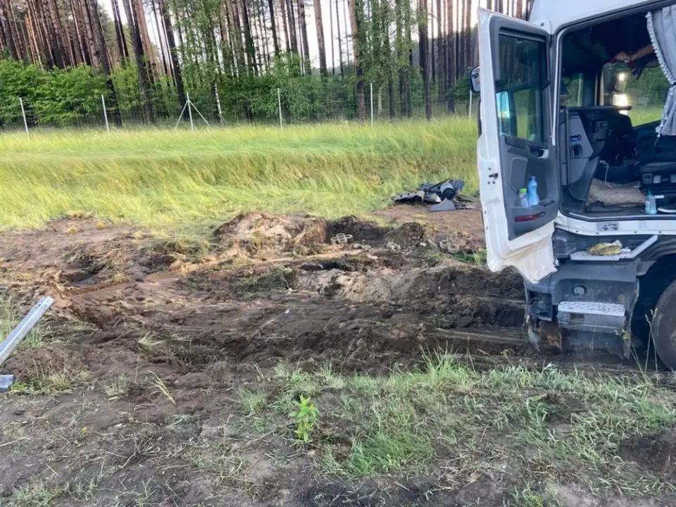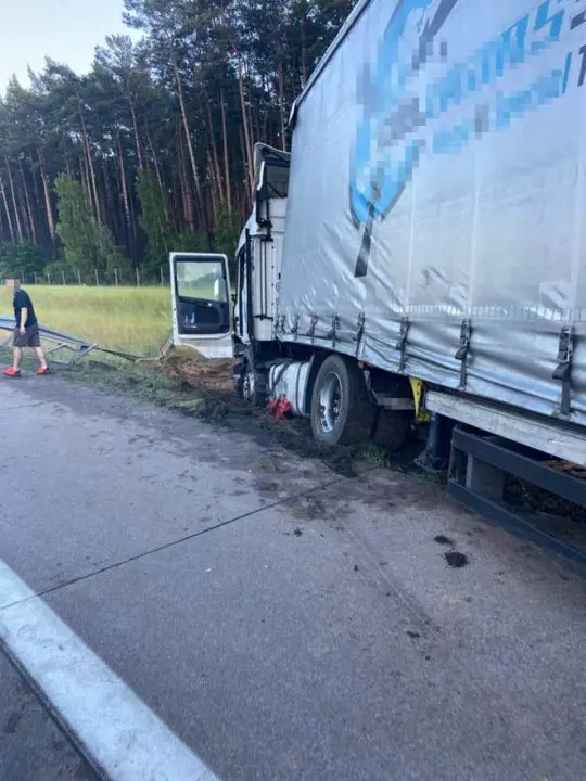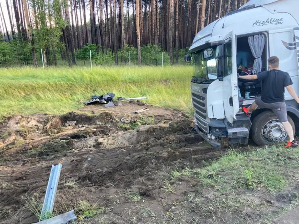 Kierowca ciężarówki mówił, że jakiś samochód osobowy uderzył w bak ciężarówki. Wtedy wpadł w poślizg i stracił panowanie nad kierownicą. Osobówka odjechała.