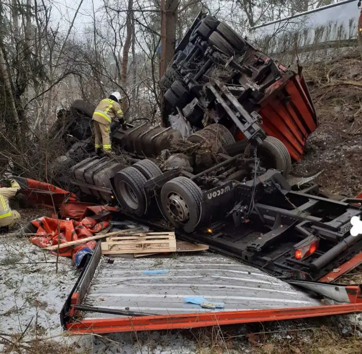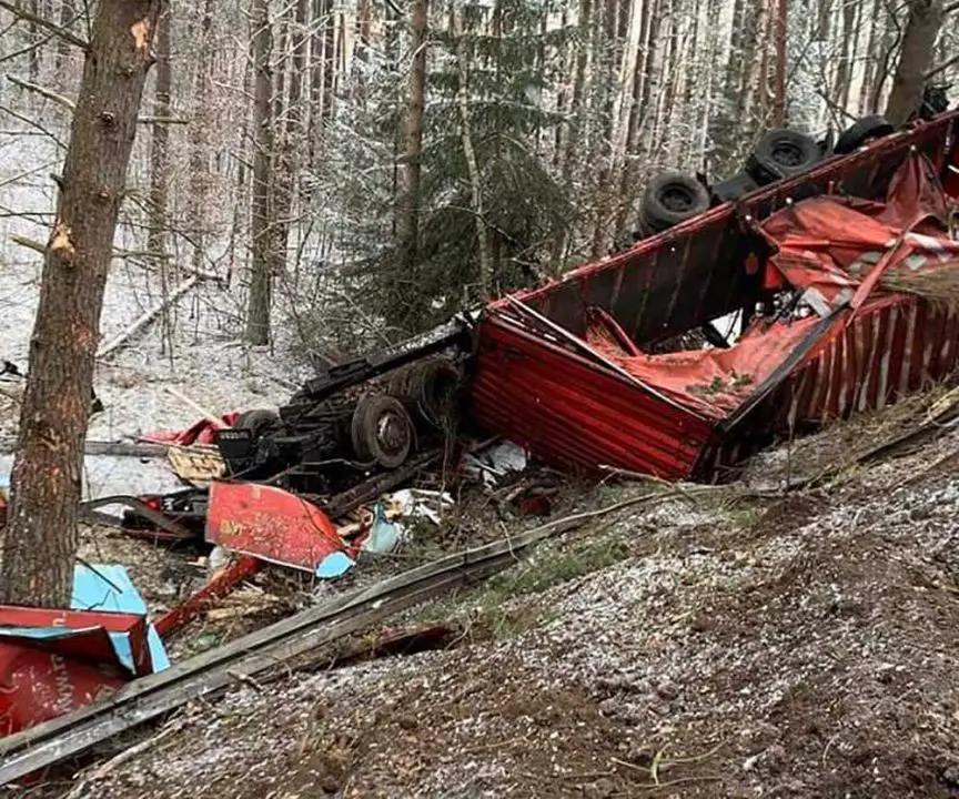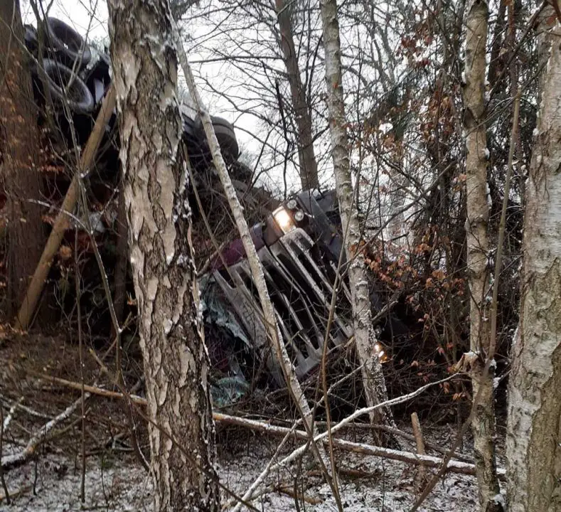 Do zdarzenia doszło w czwaretk, 11 marca, na drodze koło Wołogoszczy. Z nieustalonych jeszcze przyczyn kierujący ciężarówka wpadł w poślizg, wypadł z drogi i stoczył się do rowu.
