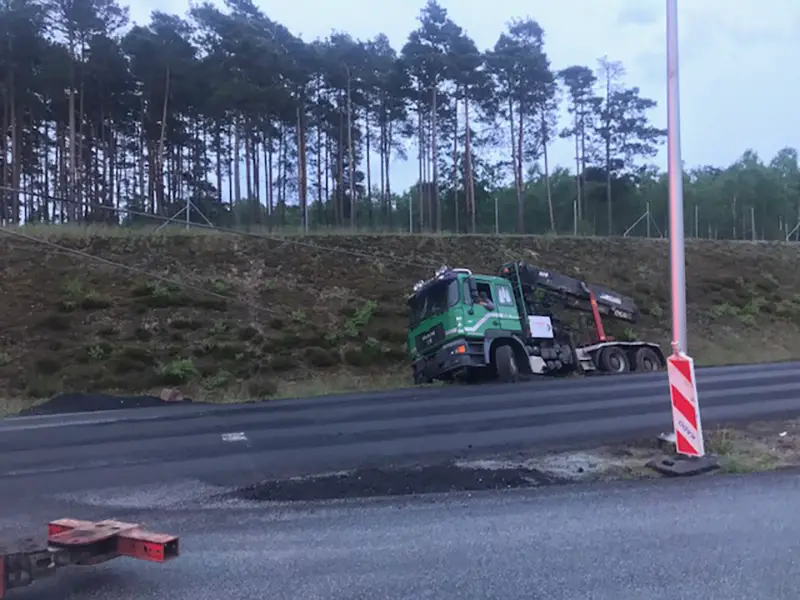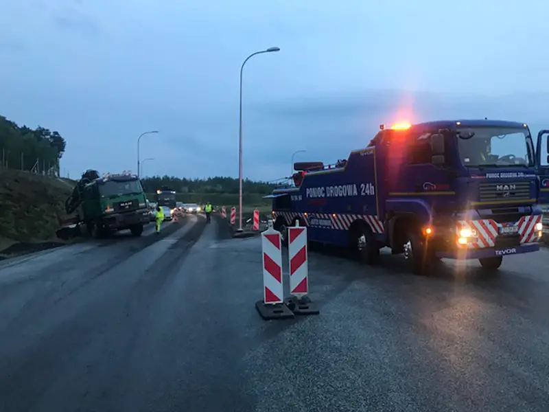 – Staraliśmy się jak najszybciej usunąć ciężarówkę z pobocza żeby nie utrudniać ruchu na remontowanym odcinku drogi – mówi Marek Dziubałka z pomocy drogowej Maxmar. Ciężkie auto zostało z pobocza wyciągnięte holownikiem.