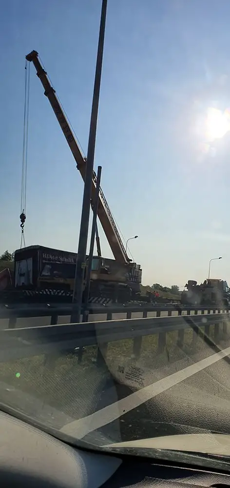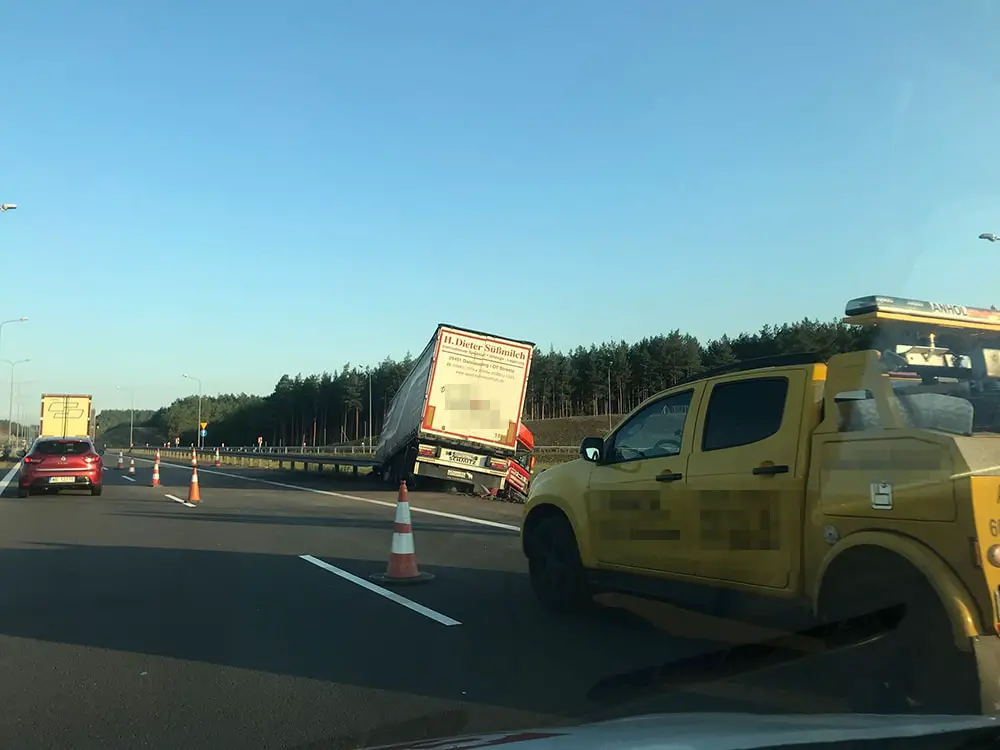 Godz. 9.30 Jak poinformował nas Czytelnik Rafał, trwa podnoszenie ciężarówki z pobocza. Jeden pas ruchu został zablokowany.