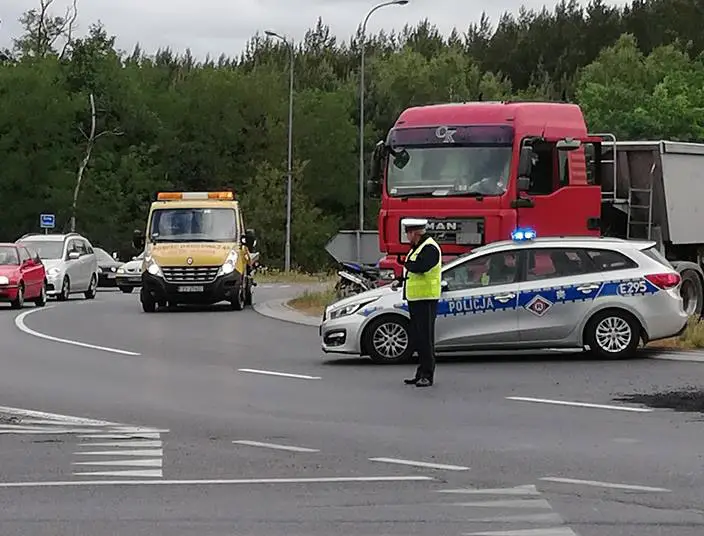 Na miejscu jest policja, która kieruje ruchem. – Dojeżdża podnośnik, który postawi ciężarówkę na koła – mówi Marek Dziubałka z pomocy drogowej Maxmar. Są utrudnienia w ruchu. Możliwe, że na czas podnoszenia ciężarówki ruch na części ronda zostanie całkowicie wstrzymany.
