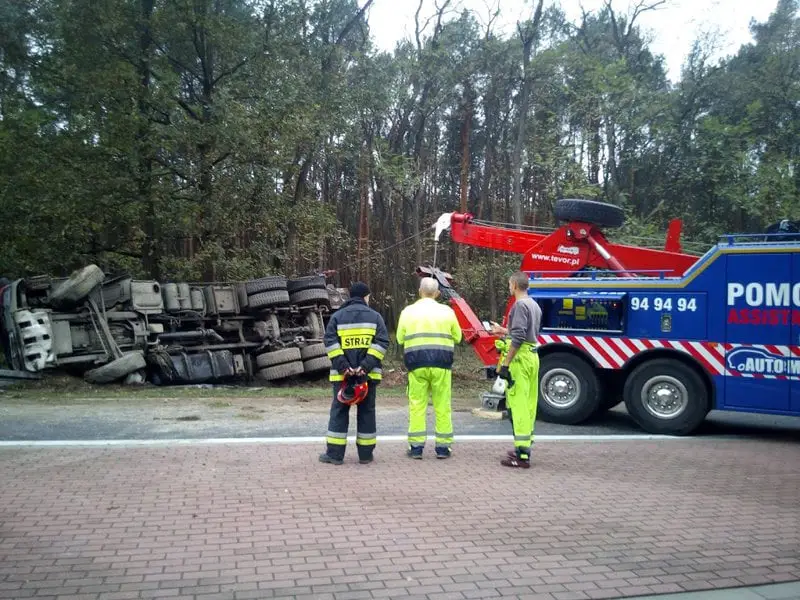 Na miejsce przyjechały służby ratunkowe. Na szczęście kierowcy nic się nie stało. Krośnieńscy policjanci i strażacy zabezpieczyli miejsce zdarzenia. Pomoc drogowa zajęła się wyciąganiem rozbitej ciężarówki z pobocza. – To było trudne zadanie, bo ciężarówka była wyładowana drewnem – mówi Marek Dziubałka z pomocy drogowej Maxmar w Zielonej Górze.