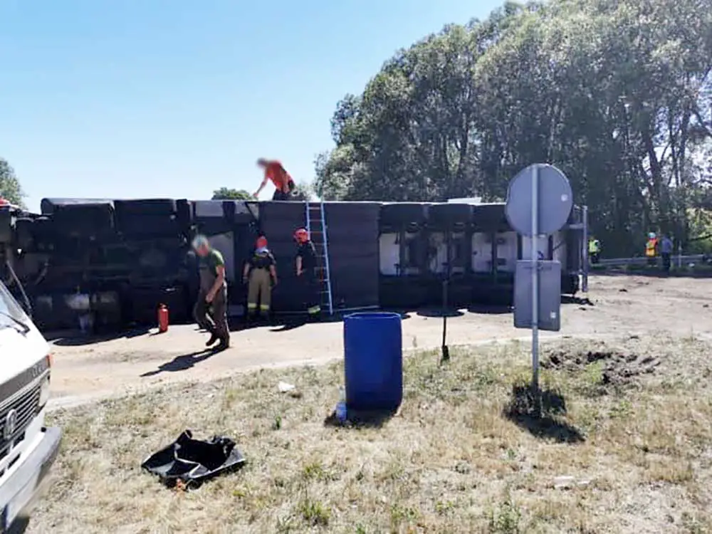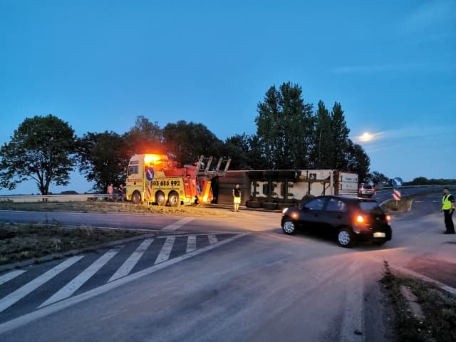 Do zdarzenia doszło w sobotę, 1 sierpnia, w Lipianach koło Myśliborza. Przewróciła się ciężarówka przewożąca mięso. Droga jest zablokowana.