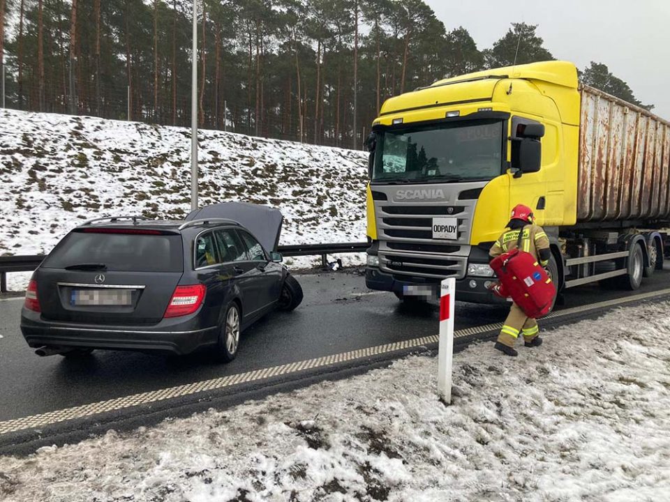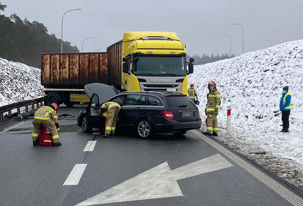 Do zderzenia samochodów doszło we wtorek, 2 lutego, na zjeździe z Trasy Północnej na trasę S3. Ciężarówka zderzył się z mercedesem.