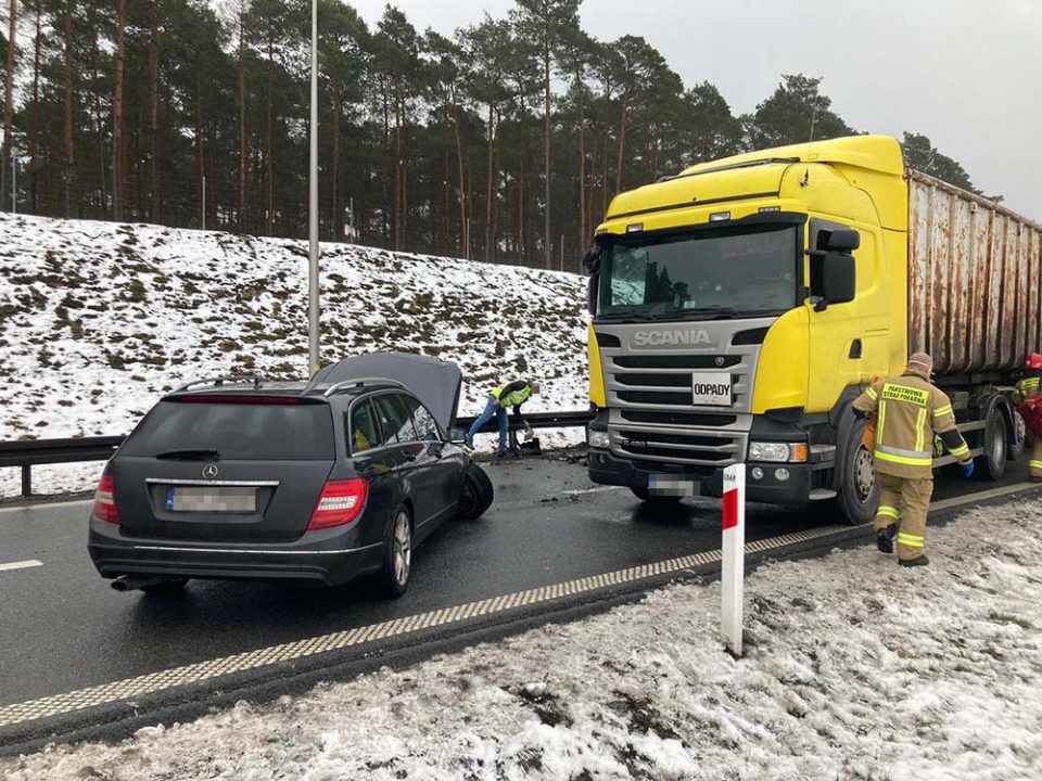 Z pierwszych informacji wiadomo, że samochód ciężarowy zderzył się z mercedesem prowadzonym przez kobietę. W mercedesie jechało również dziecko.