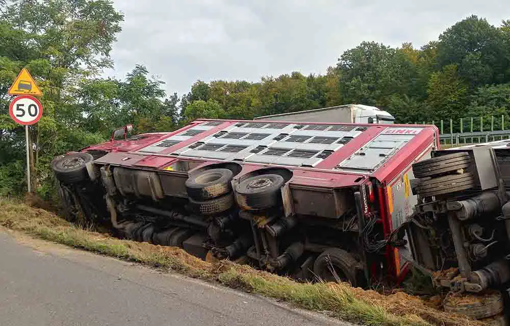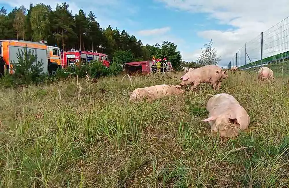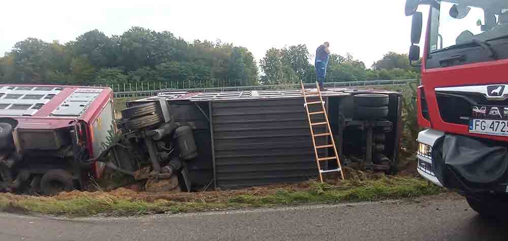 Do zdarzenia doszło w środę, 7 października, na „starej trójce” koło Gorzowa. Ciężarówka przewożąca świnie uderzyła w tył busa i wypadła z drogi. Na miejscu trwa akcja ratunkowa.
