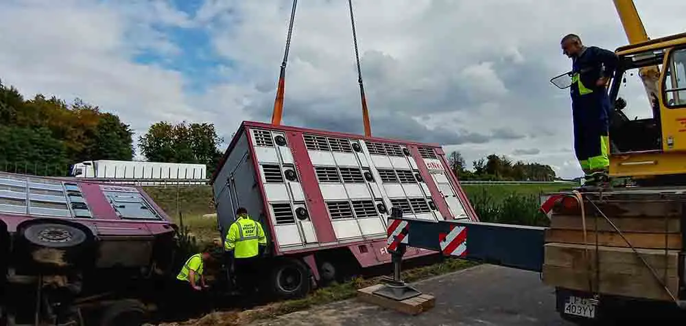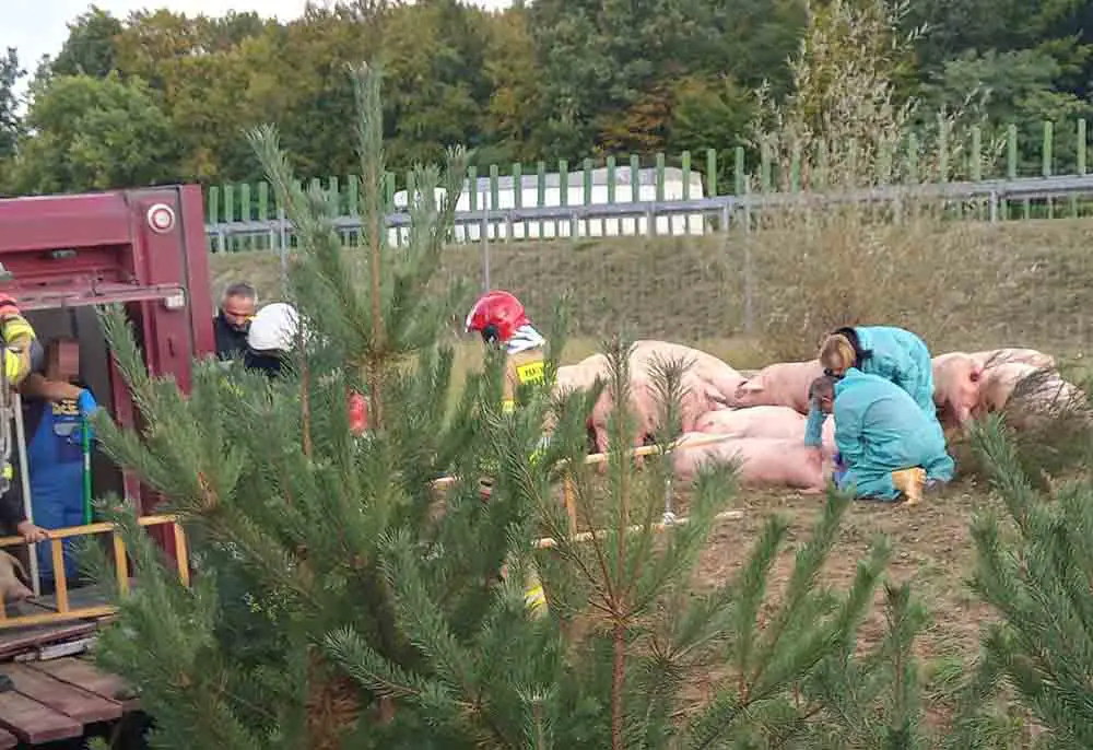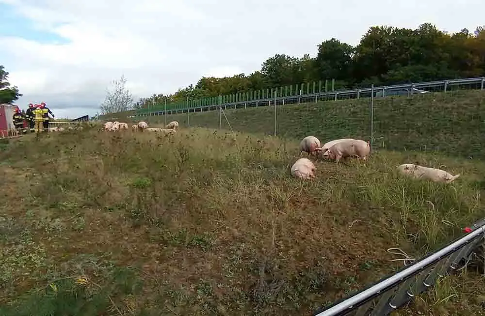Godz. 11.40 trwa akcja ratunkowa. Część zwierząt ma połamane kończy i już zapadła decyzja o ich usypianiu. Część świń, które przeżyły jest już na terenie ogrodzonym przez strażaków. Niestety sporo zwierząt zostało uwięzionych w ciężarówce. Na miejsce jedzie dźwig, który będzie ją podnosił.