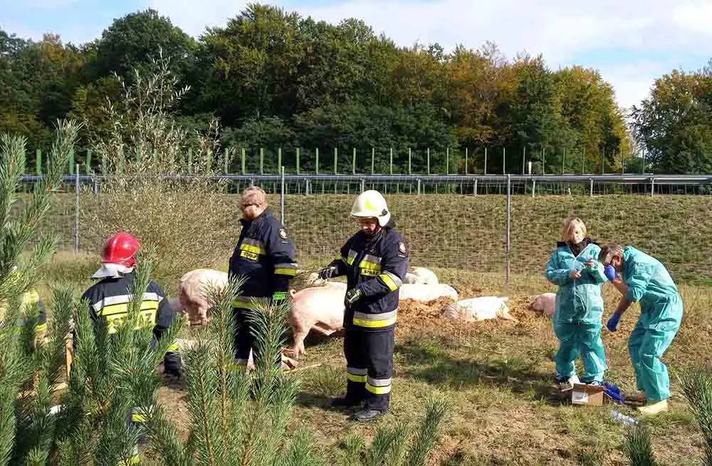 Na miejscu są już służby ratunkowo. Trwa ratowanie zwierząt. Nie wiadomo ile zwierząt zginęło w zdarzeniu. Dojechał również lekarz weterynarii. Żywe zwierzęta zostaną wypuszczone na prowizorycznie ogrodzony teren.