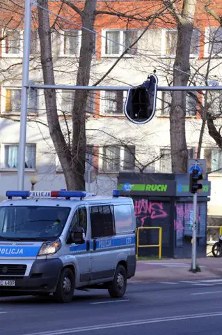 Policja zamknęła ruch na jednym pasie obawiając się, że uszkodzony sygnalizator spadnie na jadące pod nim samochody.