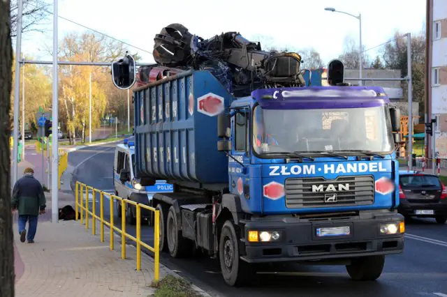Ciężarówka jechała ul. Podgórną w kierunku centrum miasta. Była wyładowana złomem. Przejeżdżając przez przejście dla pieszych zahaczyła o nową sygnalizację świetlną. Nowy sygnalizator został uszkodzony. Kierowca zignorował wysokość ładunku, który wiózł.