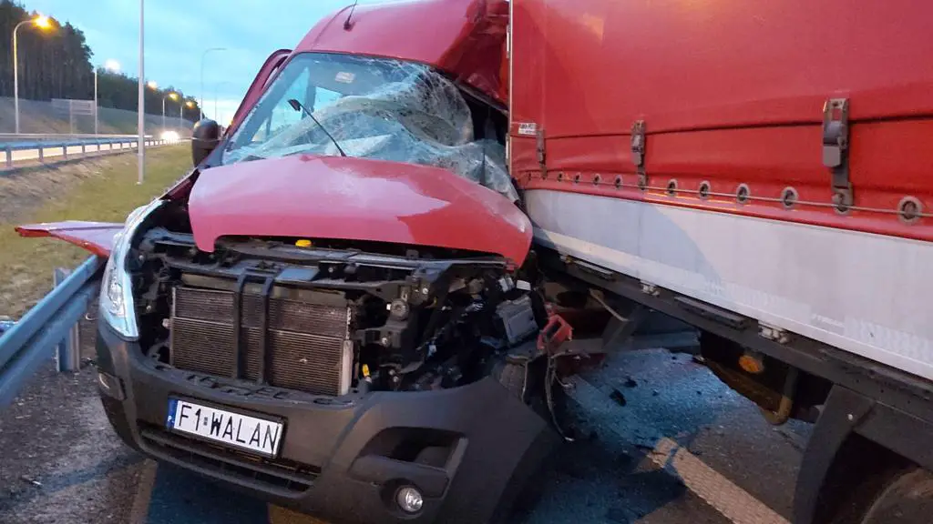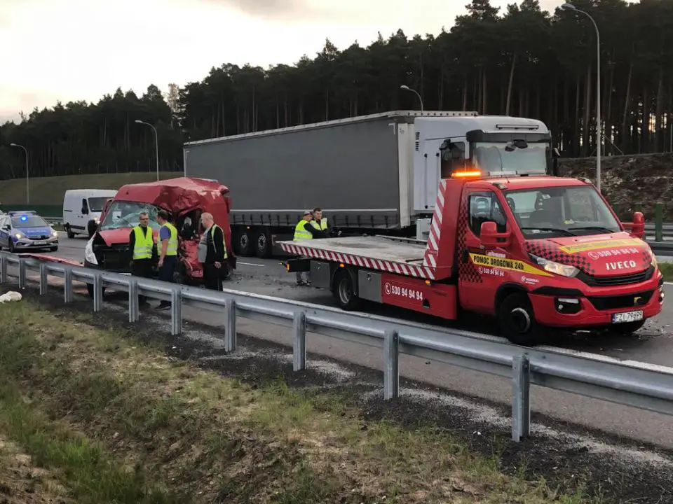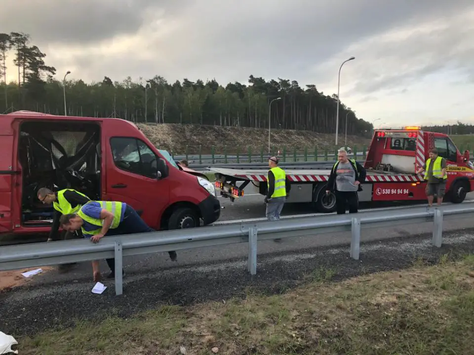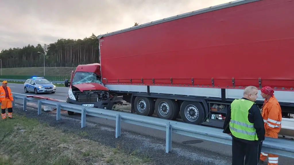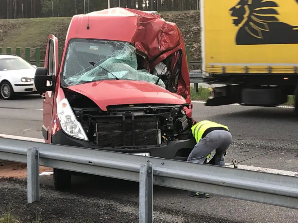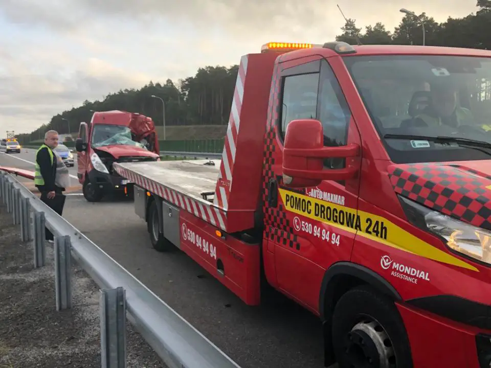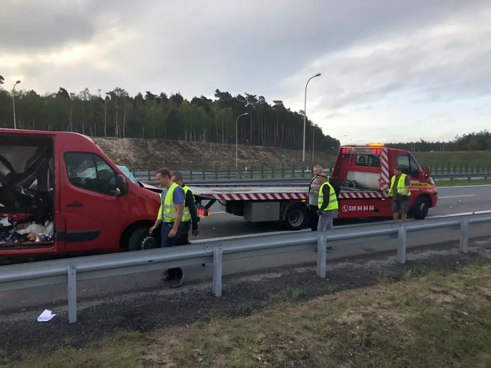 Po godz. 6.00 na trójkąt ostrzegawczy najechała rozpędzona ciężarówka. Kierowca nie hamując z dużą siłą uderzył w busa pomocy drogowej. Ciężarówka wbiła busa w tył naczepy uszkodzonej ciężarówki dosłownie miażdżąc go. Kierowca przyznał, że zasnął podczas jazdy. Ludzie naprawiający ciężarówkę cudem przeżyli. – Bus uratował nam życie – przyznaje R. Waligórski. Gdyby na drodze nie było busa uderzona ciężarówka zmiażdżyłaby osoby, które prowadziły naprawę. Osoby, które naprawiały ciężarówkę co chwilę chodziły również do busa po narzędzia. Gdyby ktoś był w busie w chwili uderzenia, nie przeżyłby. – Na szczęści nikomu nic się nie stało. To zdarzenie pokazuje jak niebezpieczną pracę wykonujemy każdego dnia – mówi Marek Dziubałka z pomocy drogowej Maxmar.