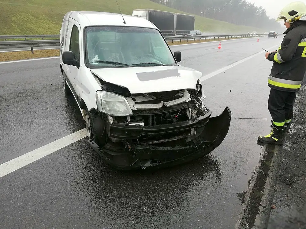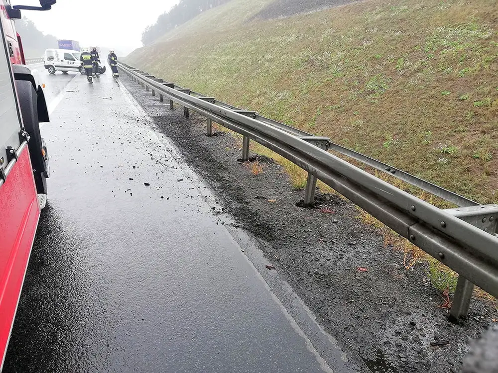 Kierujący citroenem nagle zjechał na pobocze i uderzył w barierkę energochłonną. Na szczęście, mimo mocnego uderzenia kierowcy citroena nic się nie stało. Na miejsce dojechał zastęp OSP Skwierzyna. Strażacy zabezpieczyli rozbity pojazd i sprzątnęli miejsce zdarzenia. Zepchnęli również citroena na awaryjny pas.