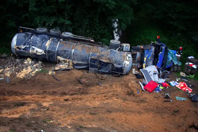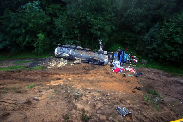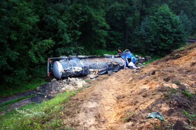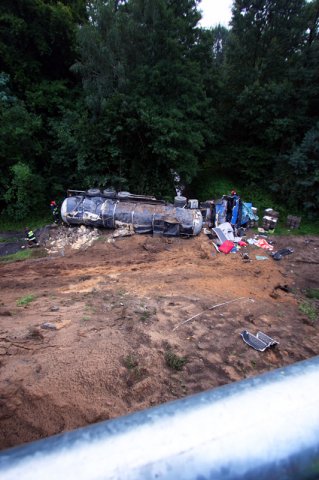 Cysterna jechała „krajową trójką” w kierunku Nowej Soli. Na wysokości remontowanego wiaduktu pod Zieloną Górą kierowca nagle zjechał na pobocze. Koła zaryły się w miękki piach i cysterna spadła z wiaduktu o wysokości kilkunastu metrów.